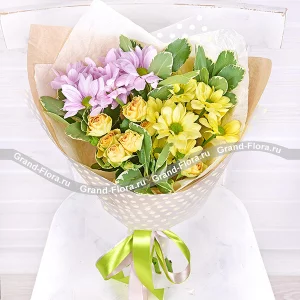 Солнечный день - букет-новинка из хризантемы, альстромерии и эустомы