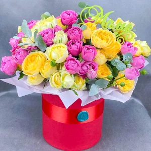 Подарок маме – коробка с кустовыми розами