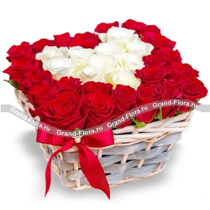 Волшебный день - корзинка из кустовых хризантем с сердечками