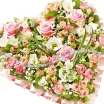 Мечта Богини - сердце из оазиса с розовой розой, эустомой и альстромерией