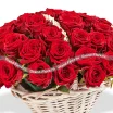 33 розы: роза красная - 33 шт., оазис, корзина.